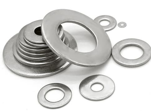 Common sizes for flat washers include M4, M5, M6, M8, M10, M12, 1/4″, 5/16″, 3/8″, and 1/2″.