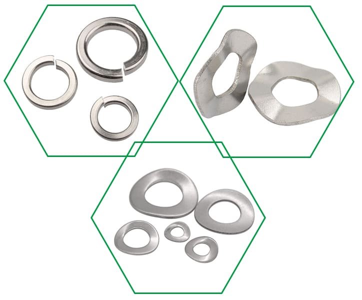 - Spring Washer: Ideal for preventing fasteners from loosening due to vibration or temperature changes, because of its spring action keeps constant tension on the fastener.